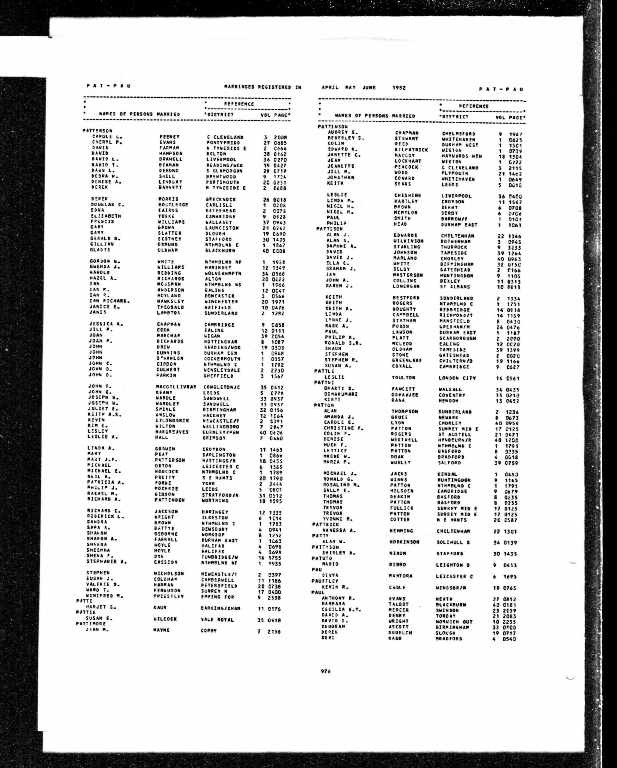 Philip Joseph Patterson - England & Wales, Marriage Index, 1916-2005