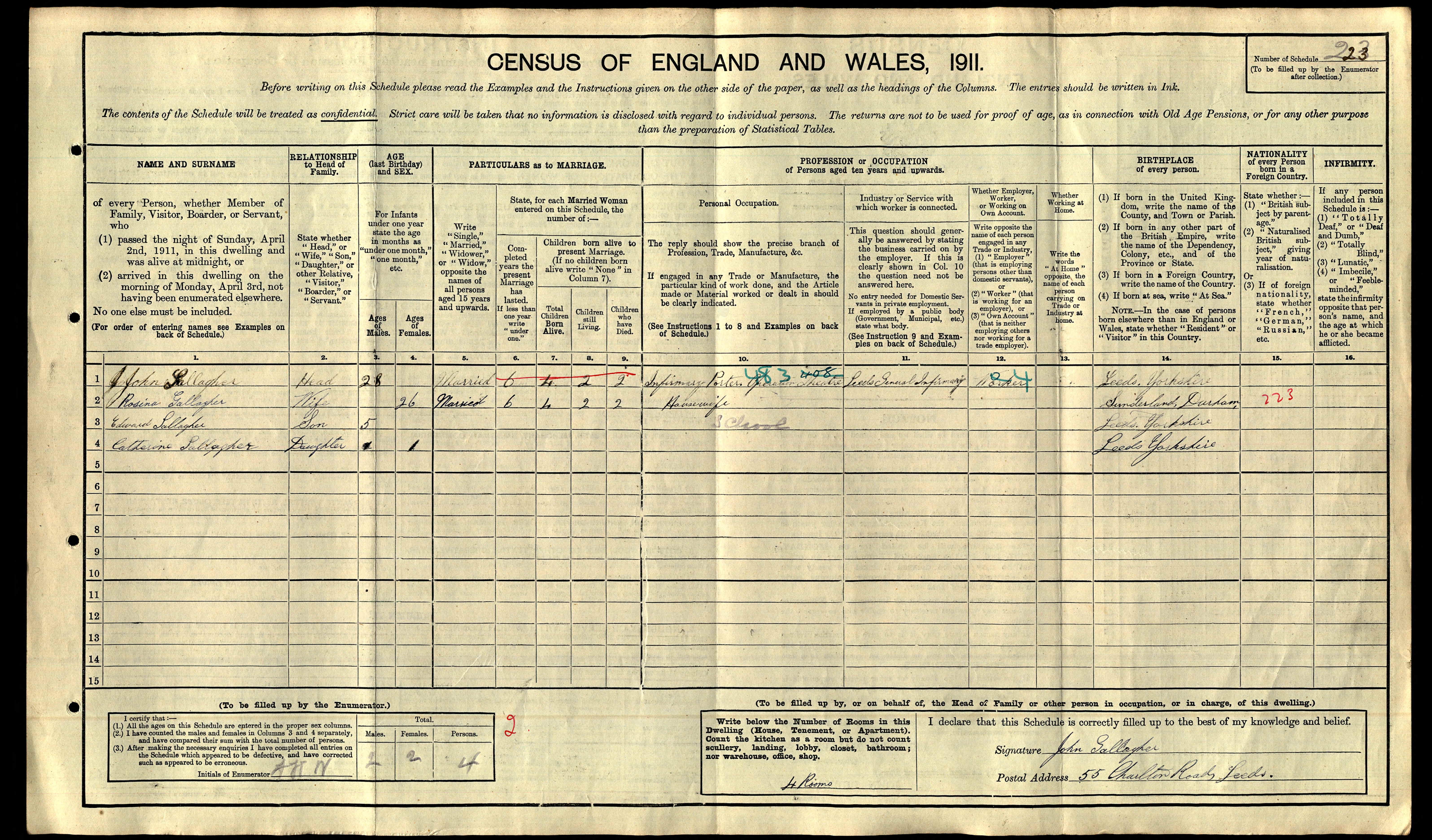 Edward Gallagher - 1911 England Census