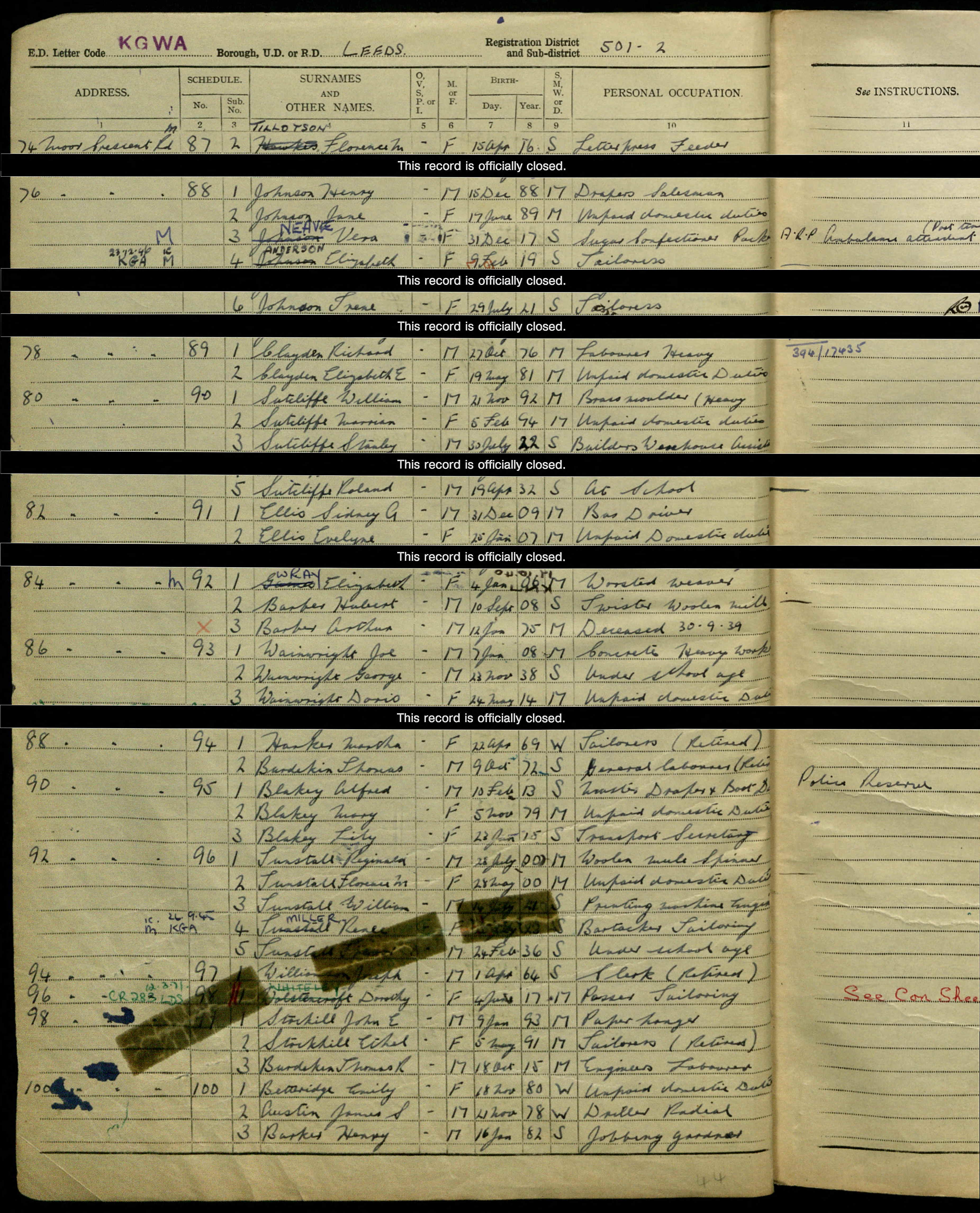 The National Archives; Kew, London, England; 1939 Register; Reference: RG 101/3484E