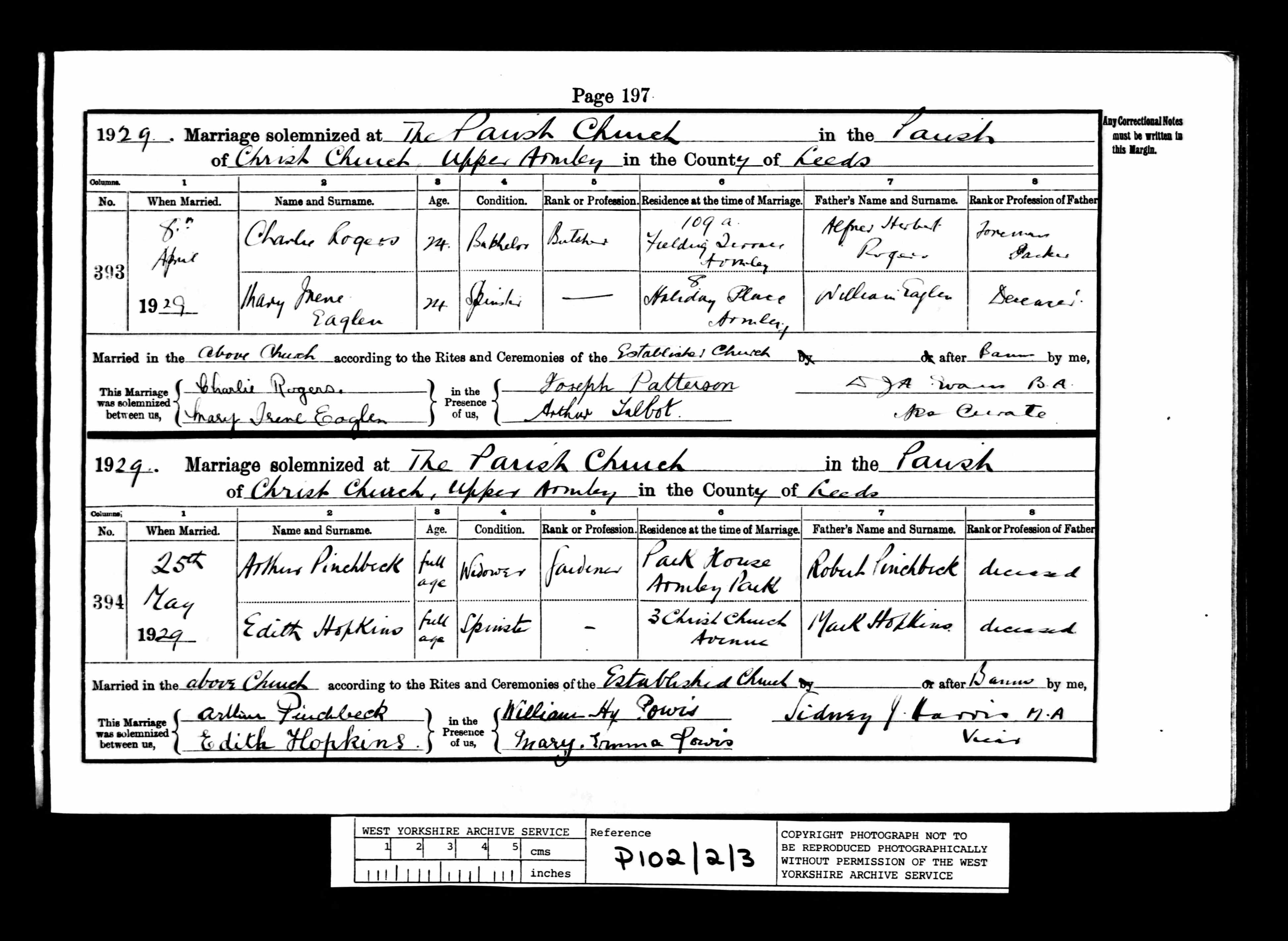 Charles Rogers - West Yorkshire, England, Marriages and Banns, 1813-1935