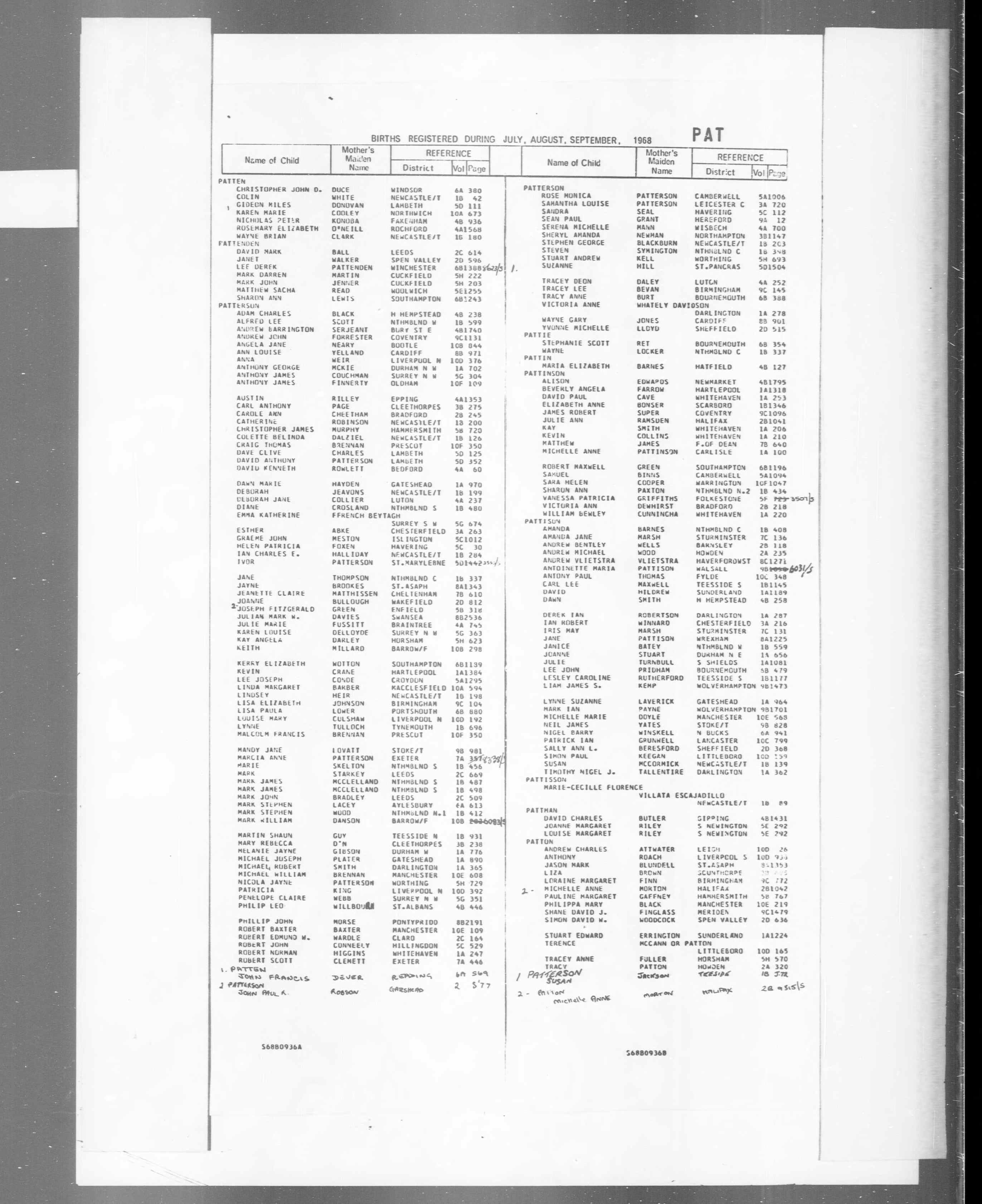 Mark John Patterson - England & Wales, Civil Registration Birth Index, 1916-2007