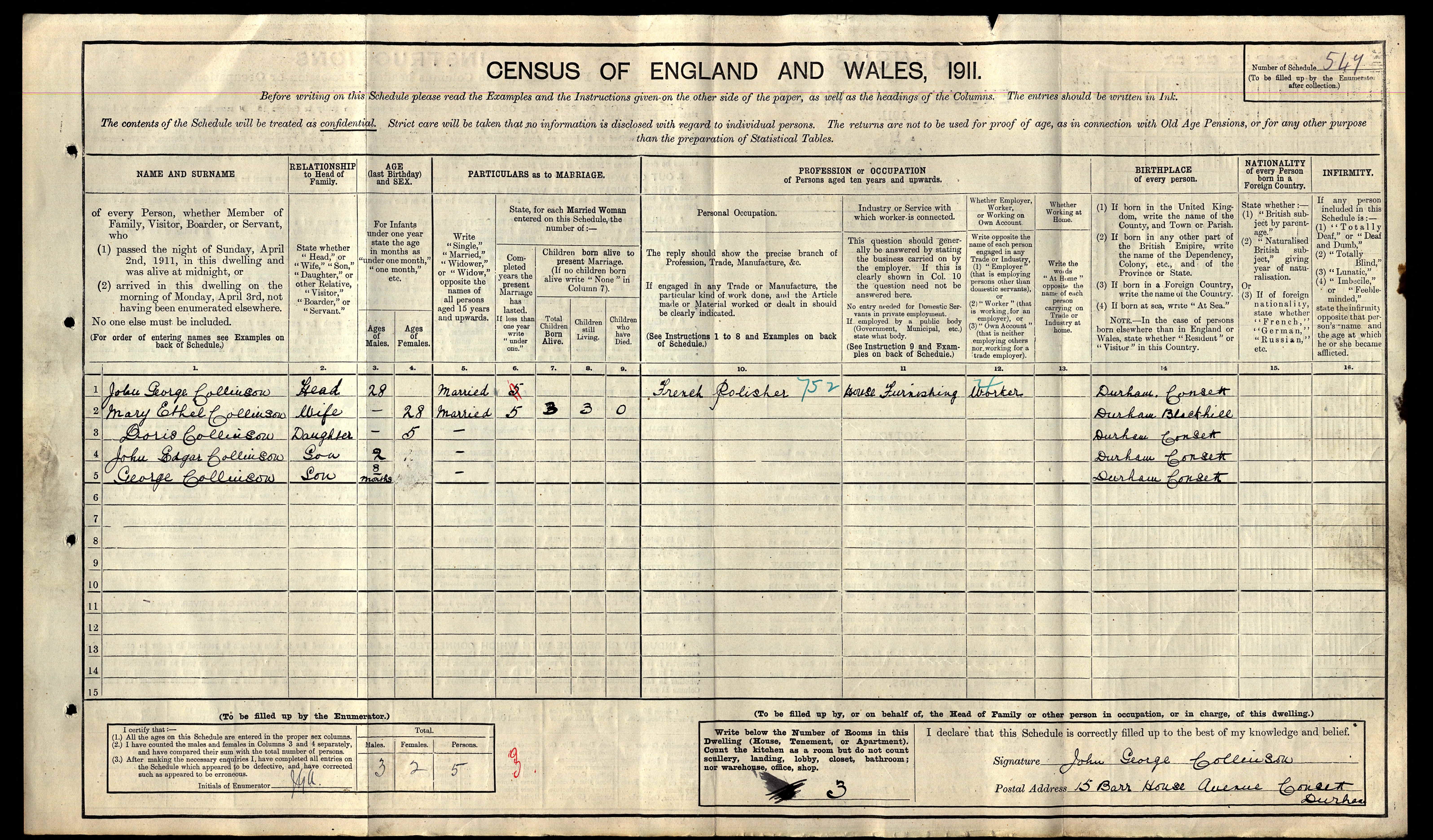 Doris Collinson - 1911 England Census