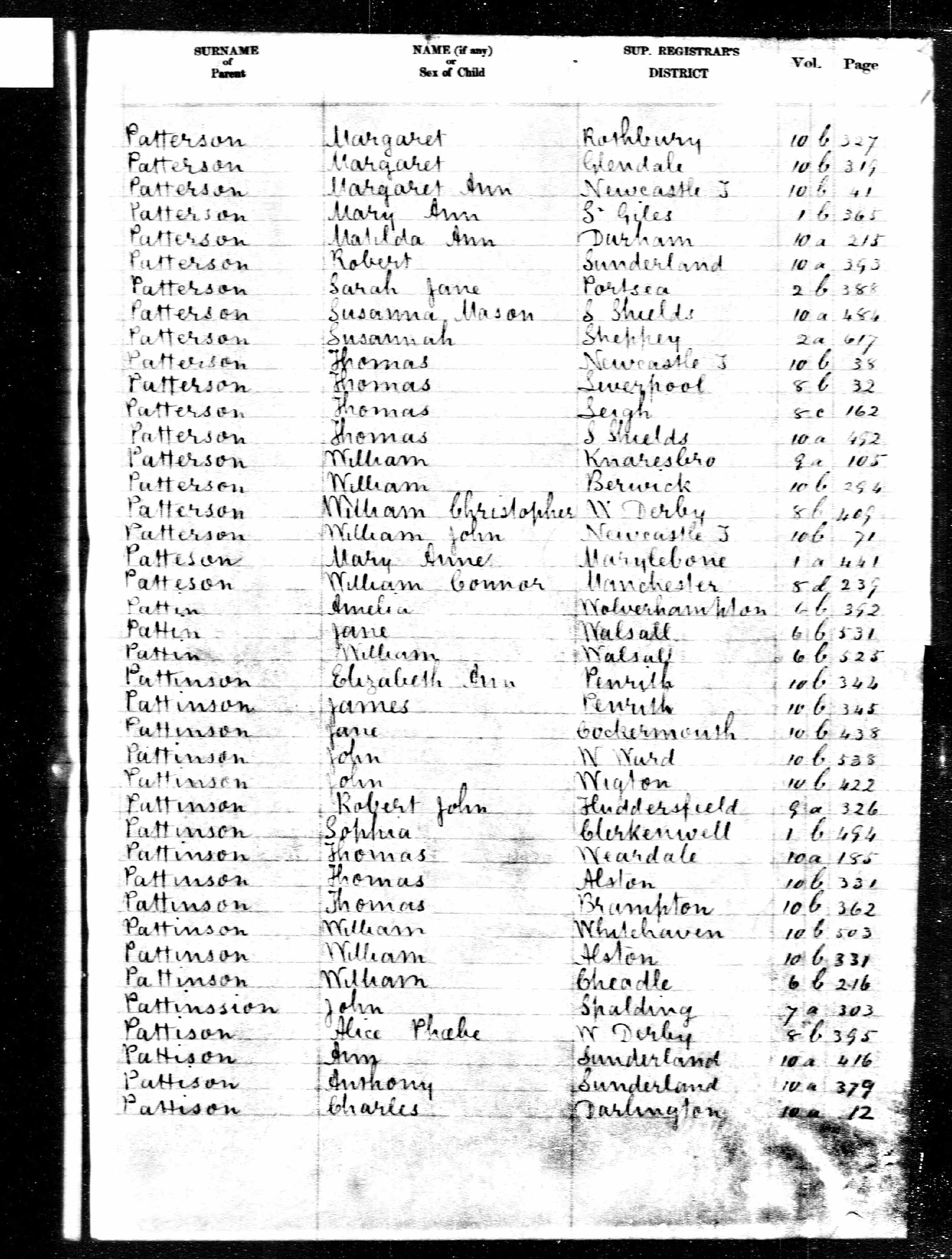 Matilda Ann Patterson - England & Wales, FreeBMD Birth Index, 1837-1915