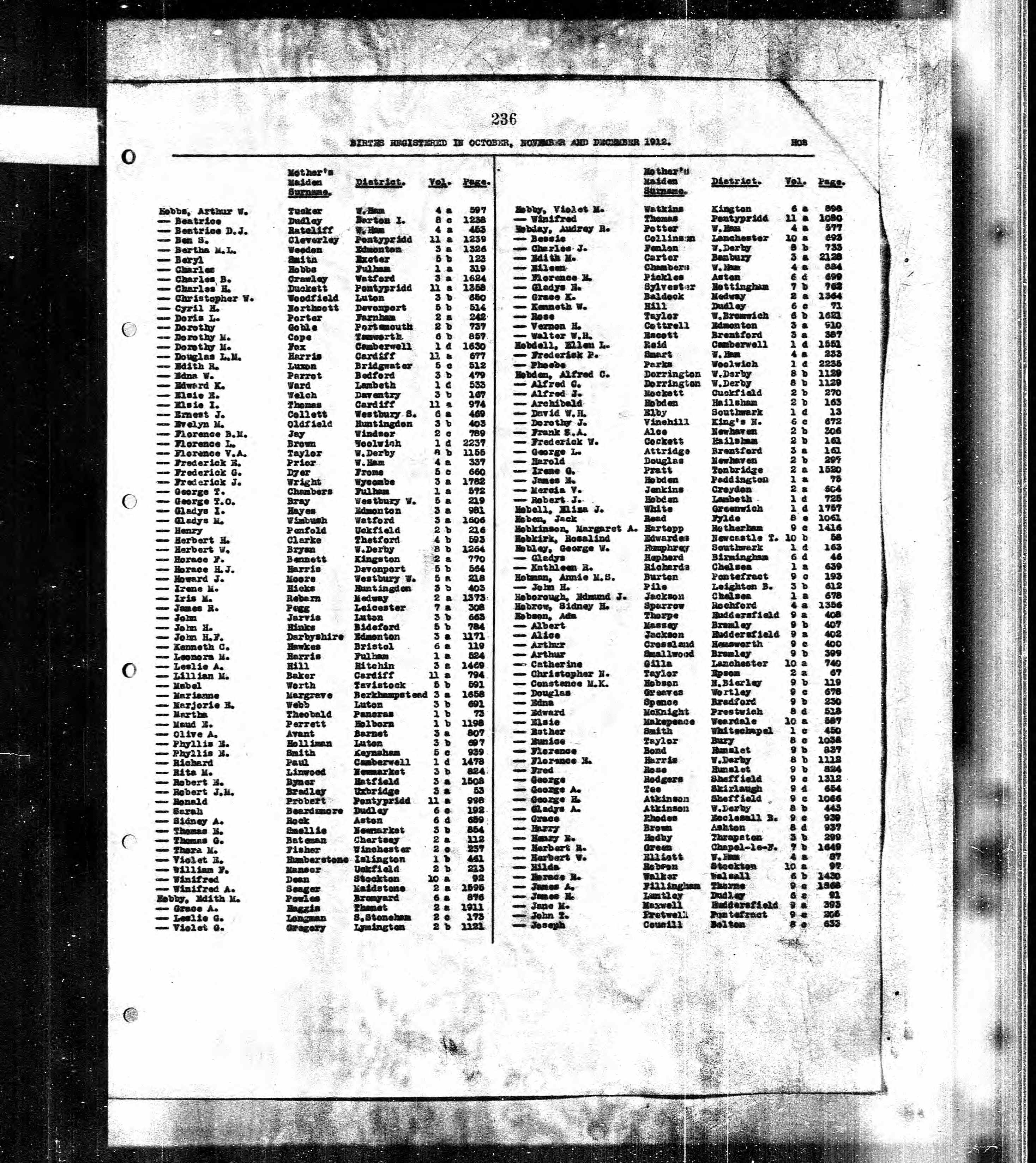 Bessie Hobday - England & Wales, FreeBMD Birth Index, 1837-1915