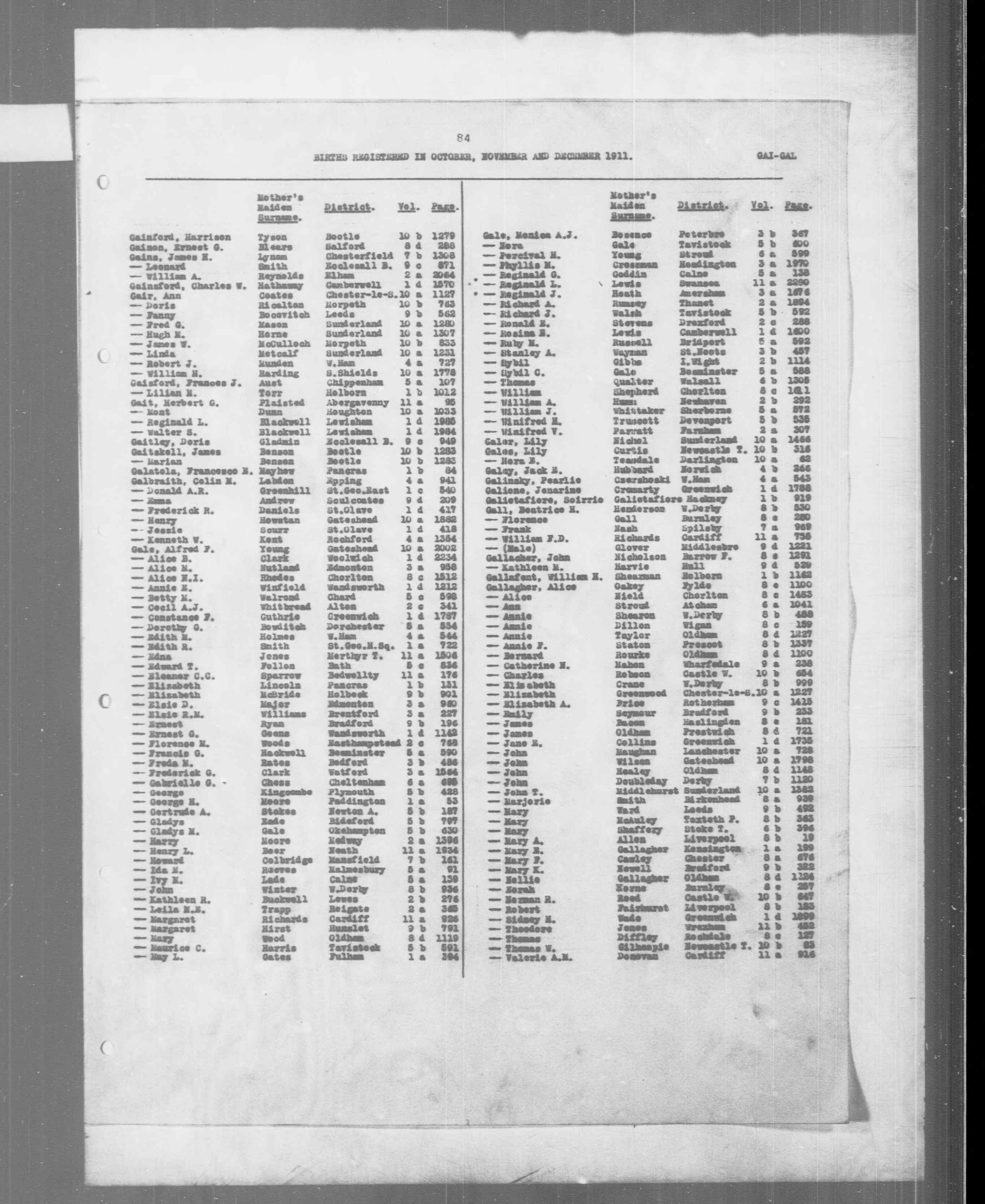 Mary Gallagher - England & Wales, Civil Registration Birth Index, 1837-1915