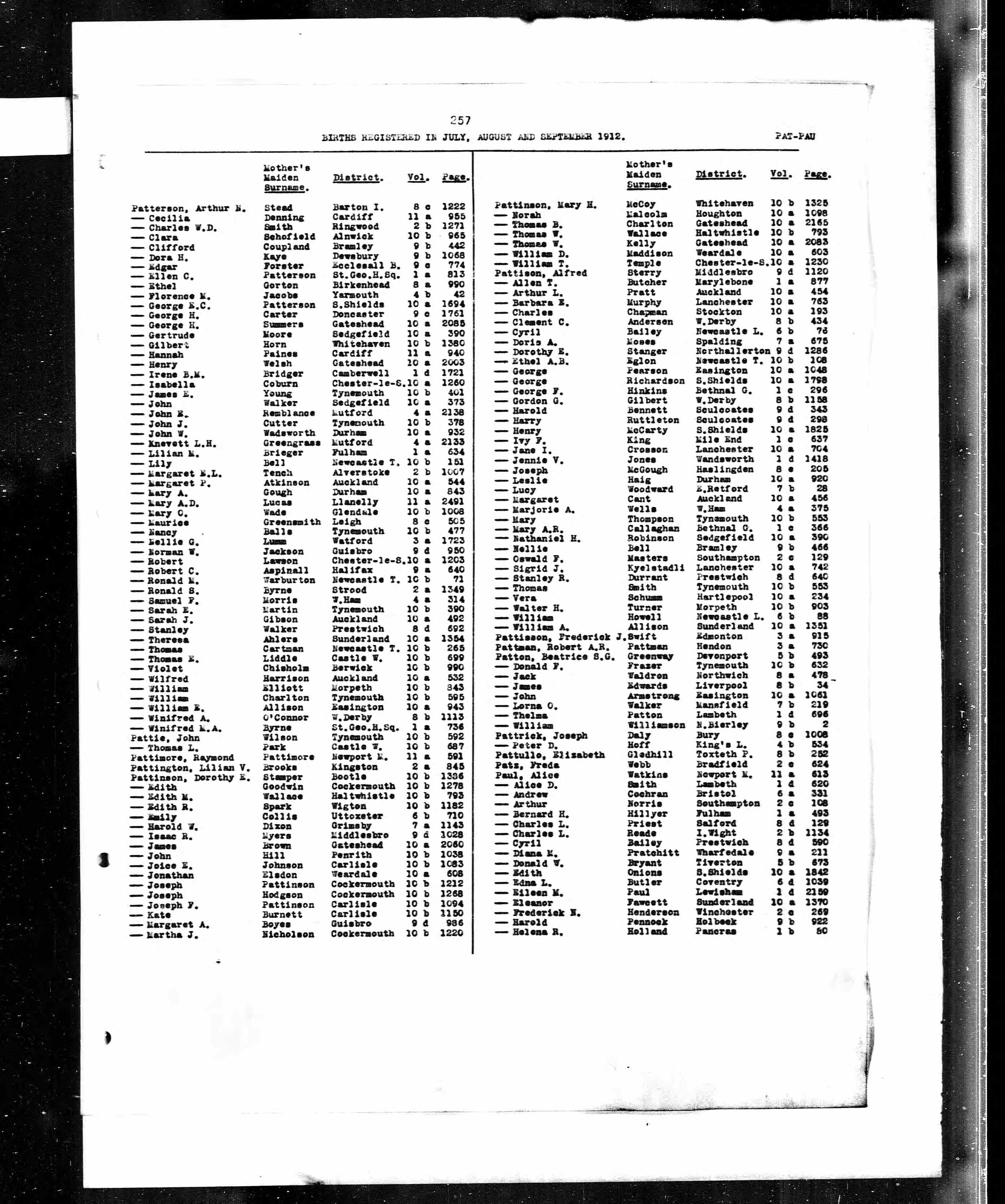 Clifford Patterson - England & Wales, FreeBMD Birth Index, 1837-1915