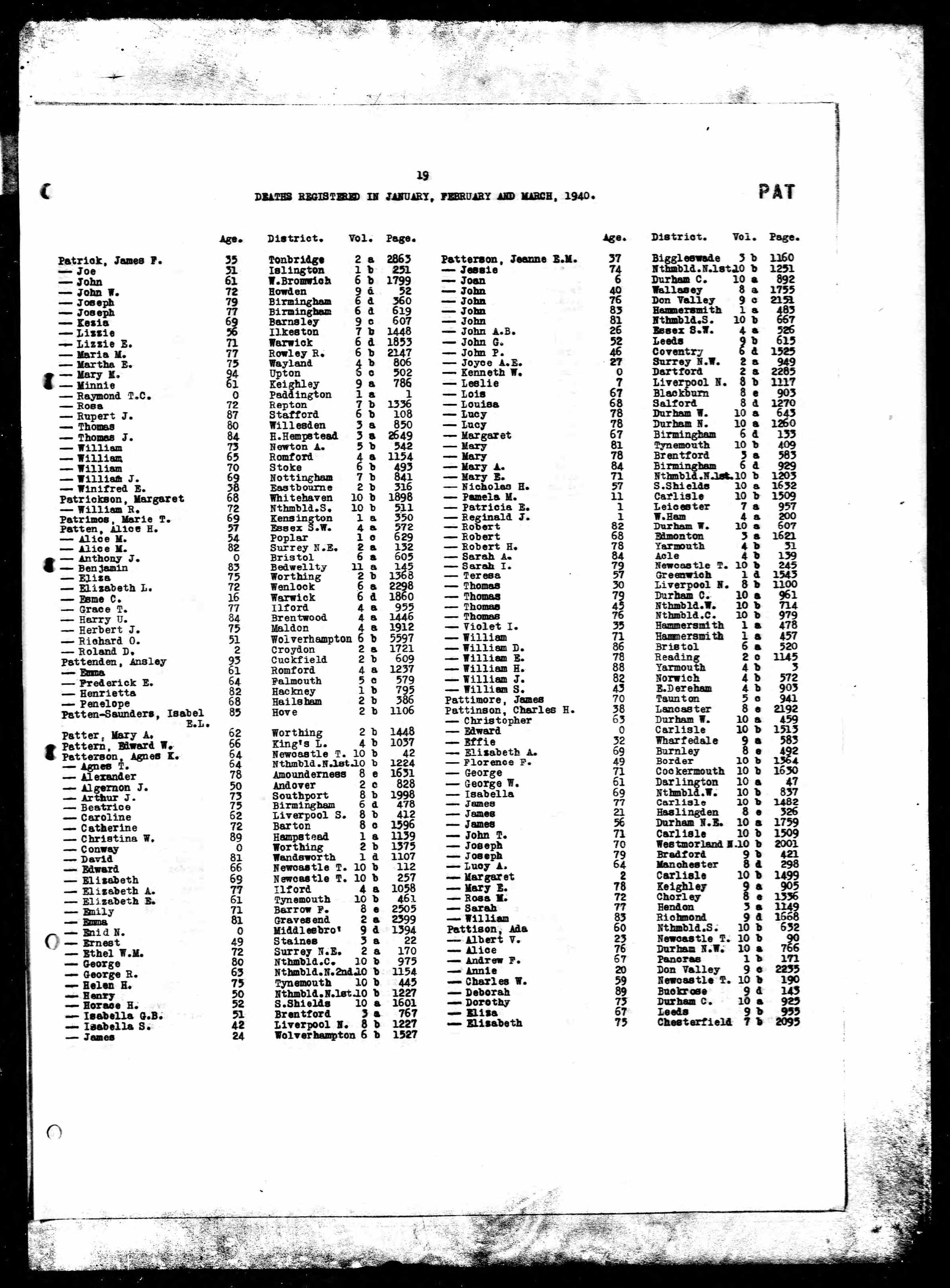John George Patterson - England & Wales, Death Index, 1916-2007