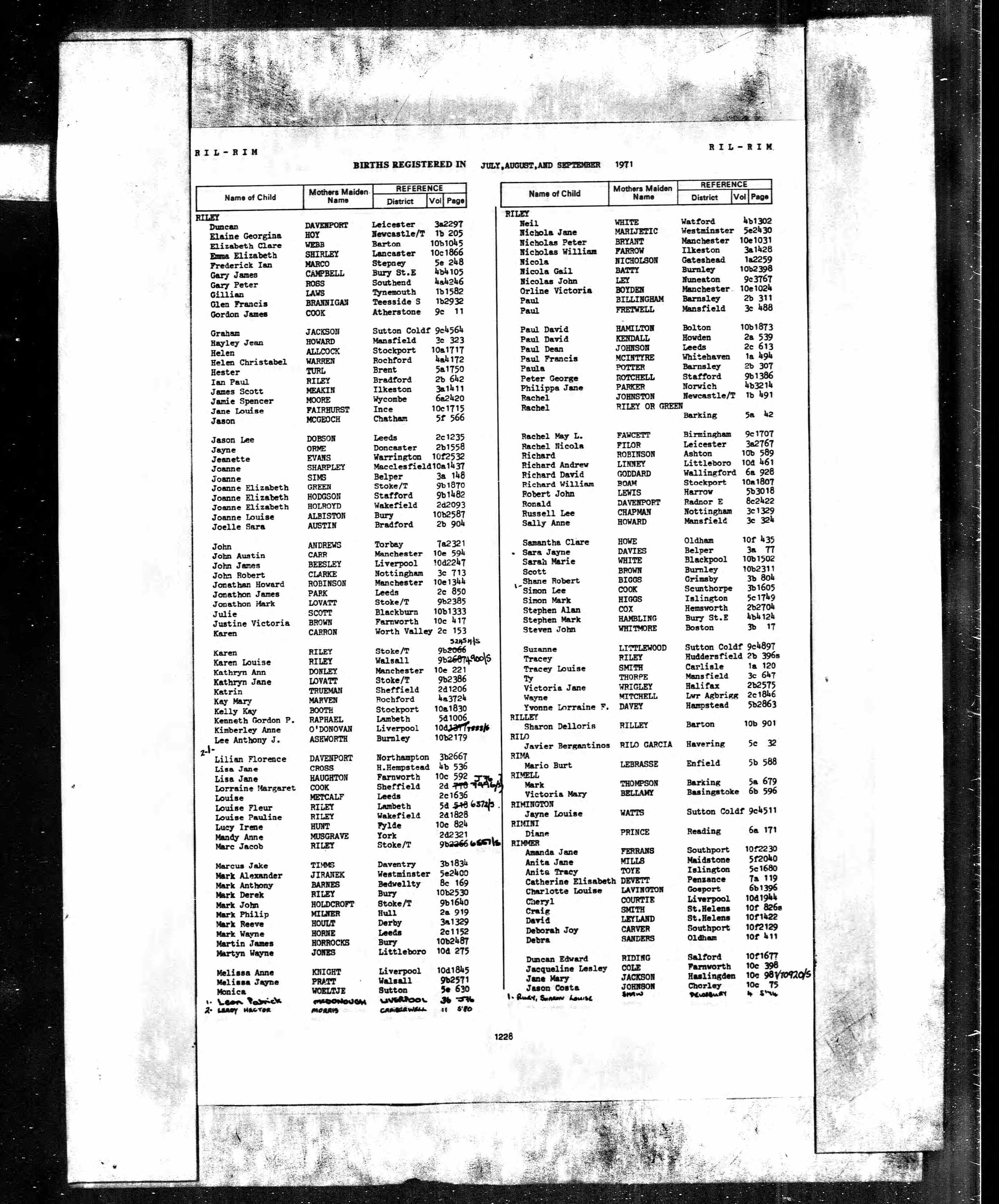 Paula Riley - England & Wales, Birth Index, 1916-2005