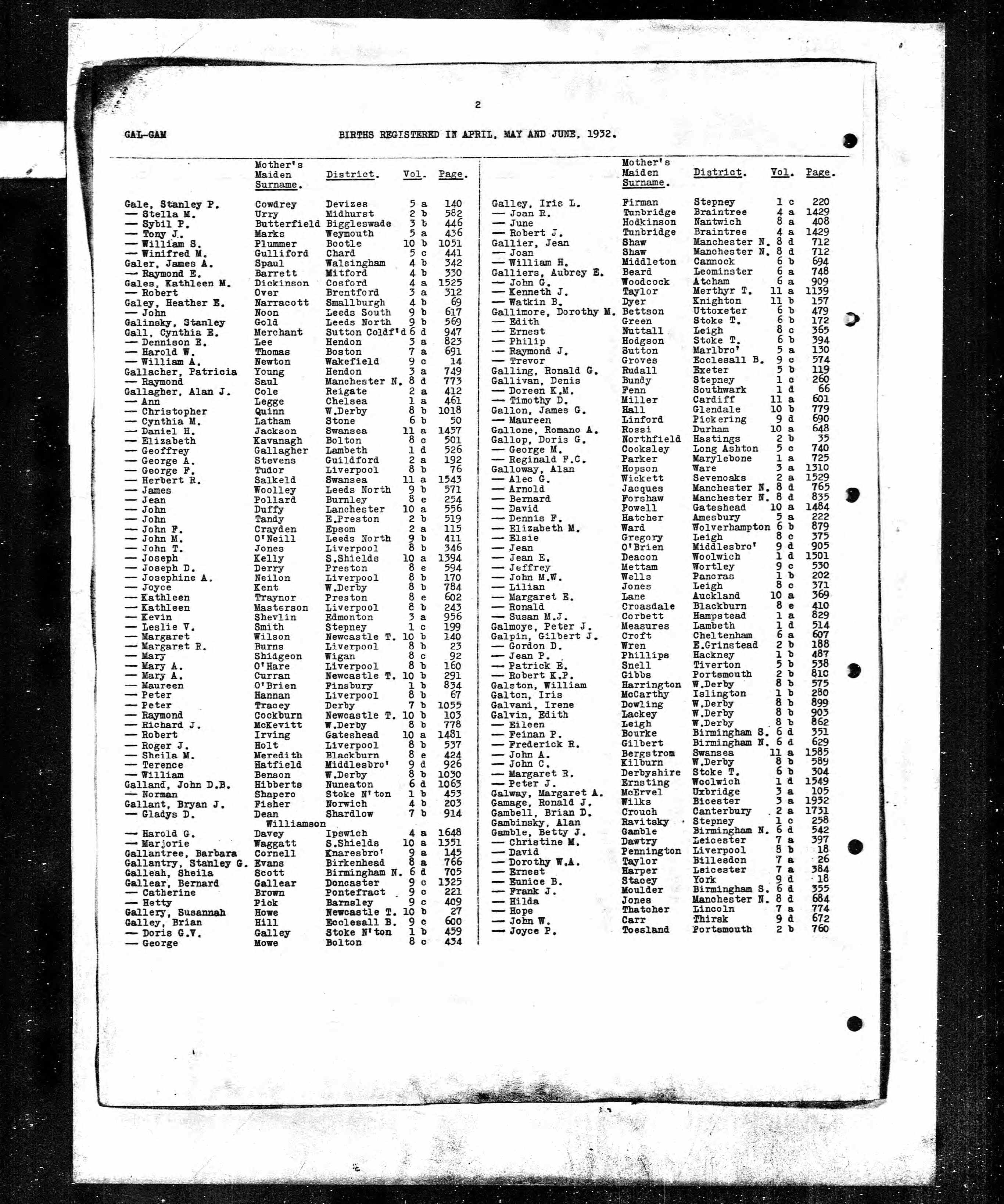 John M Gallagher - England & Wales, Birth Index, 1916-2005