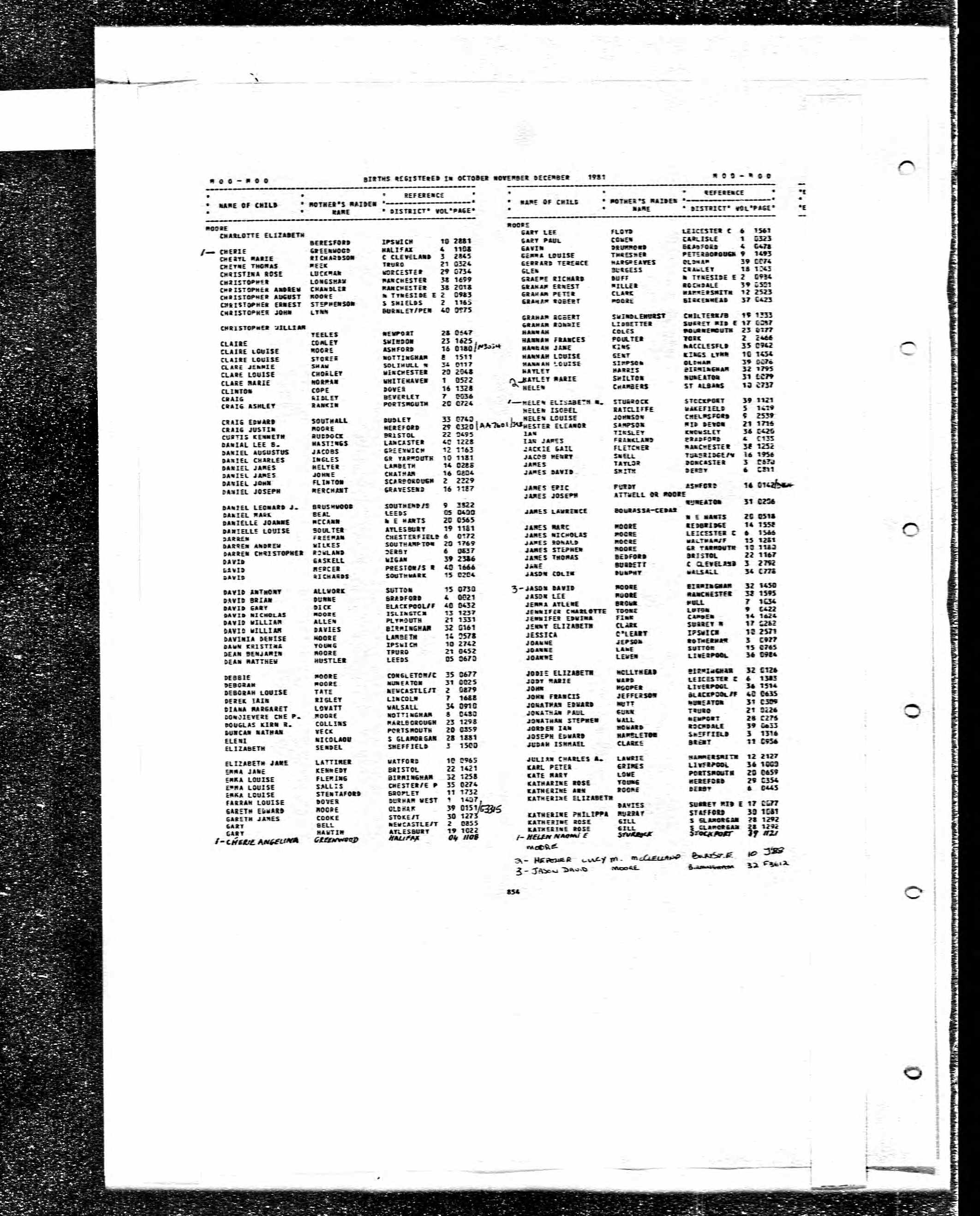 Dean Matthew Moore - England & Wales, Birth Index, 1916-2005