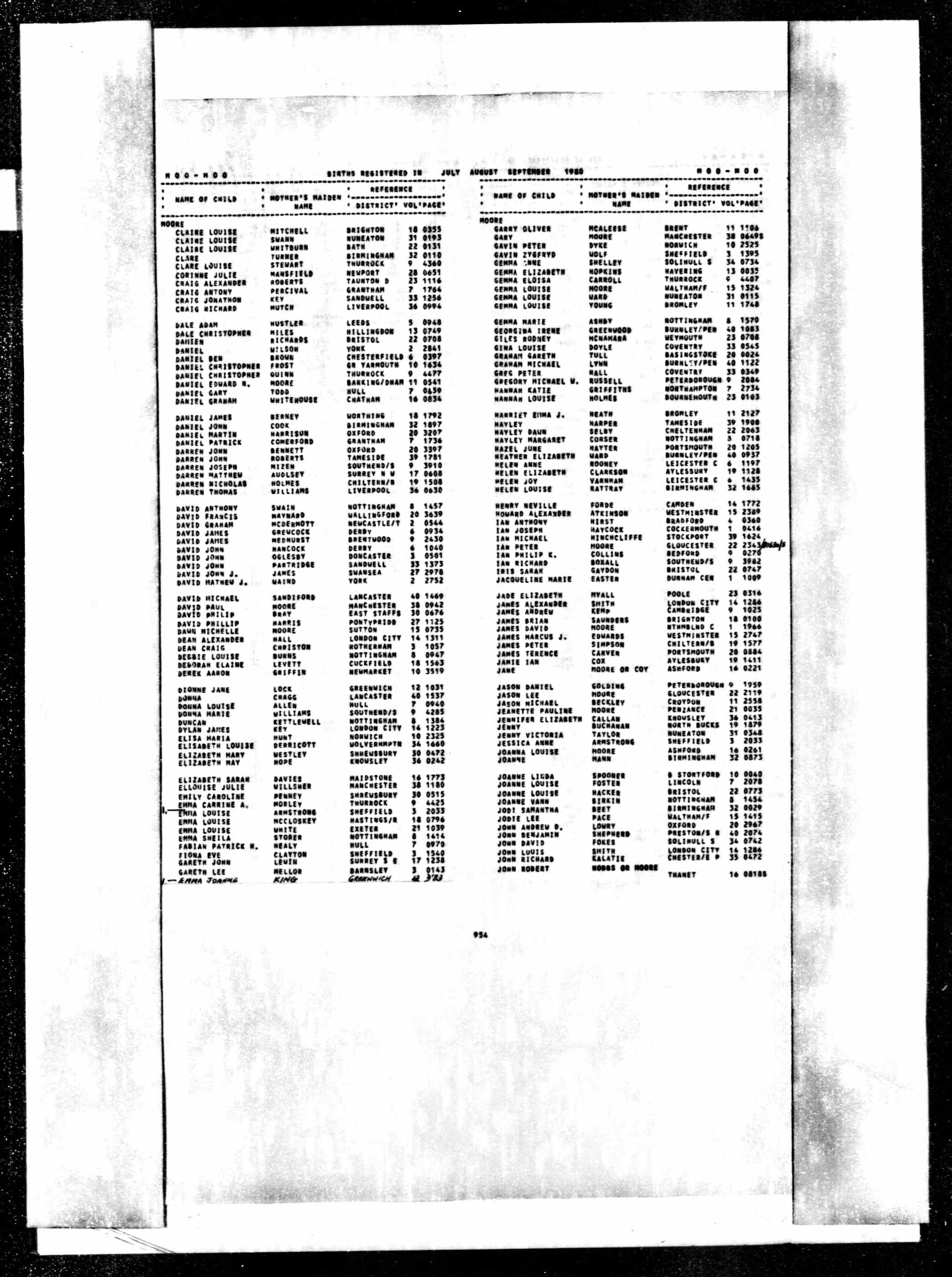 Dale Adam Moore - England & Wales, Birth Index, 1916-2005