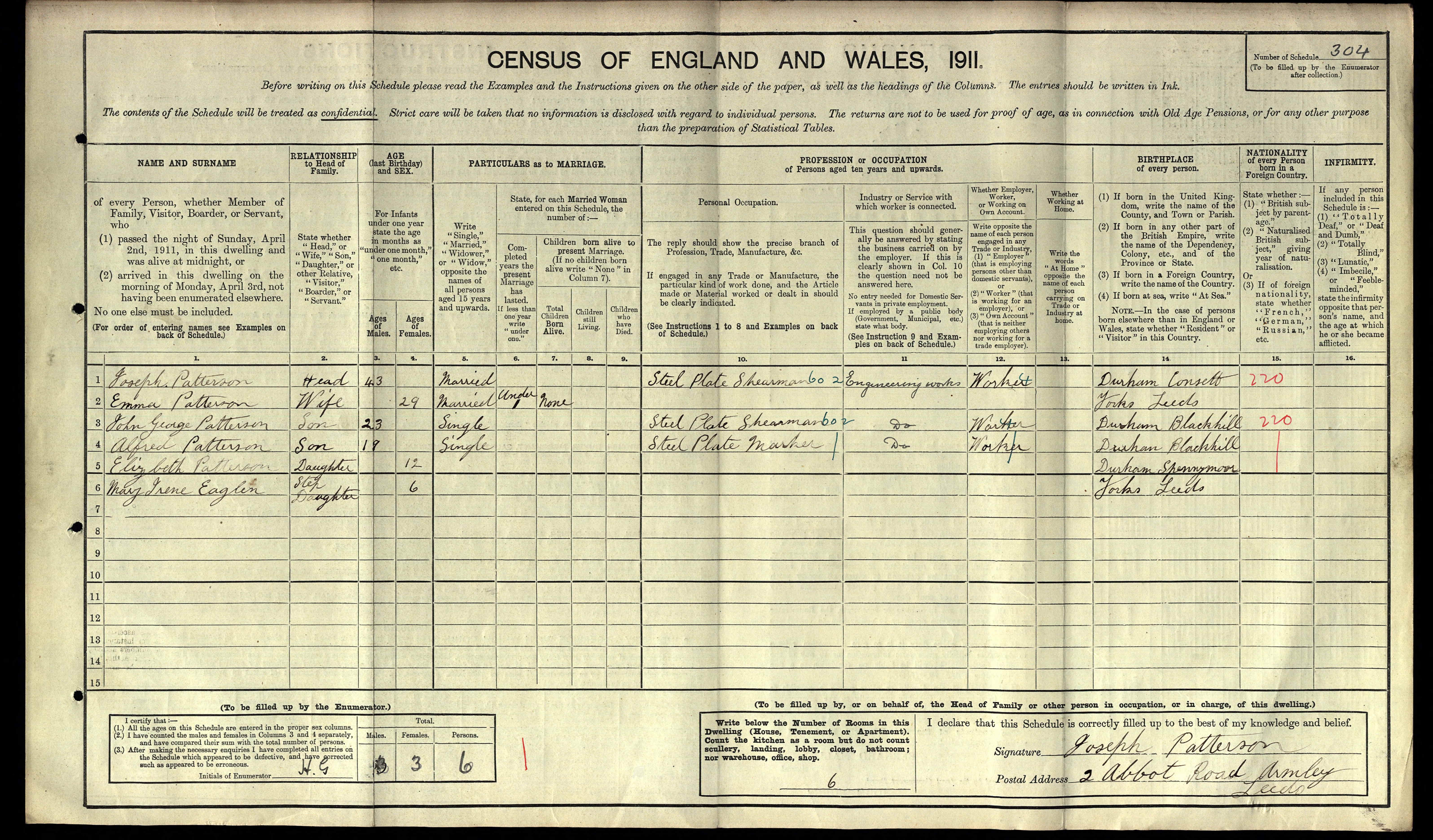 Elizabeth Patterson - 1911 England Census