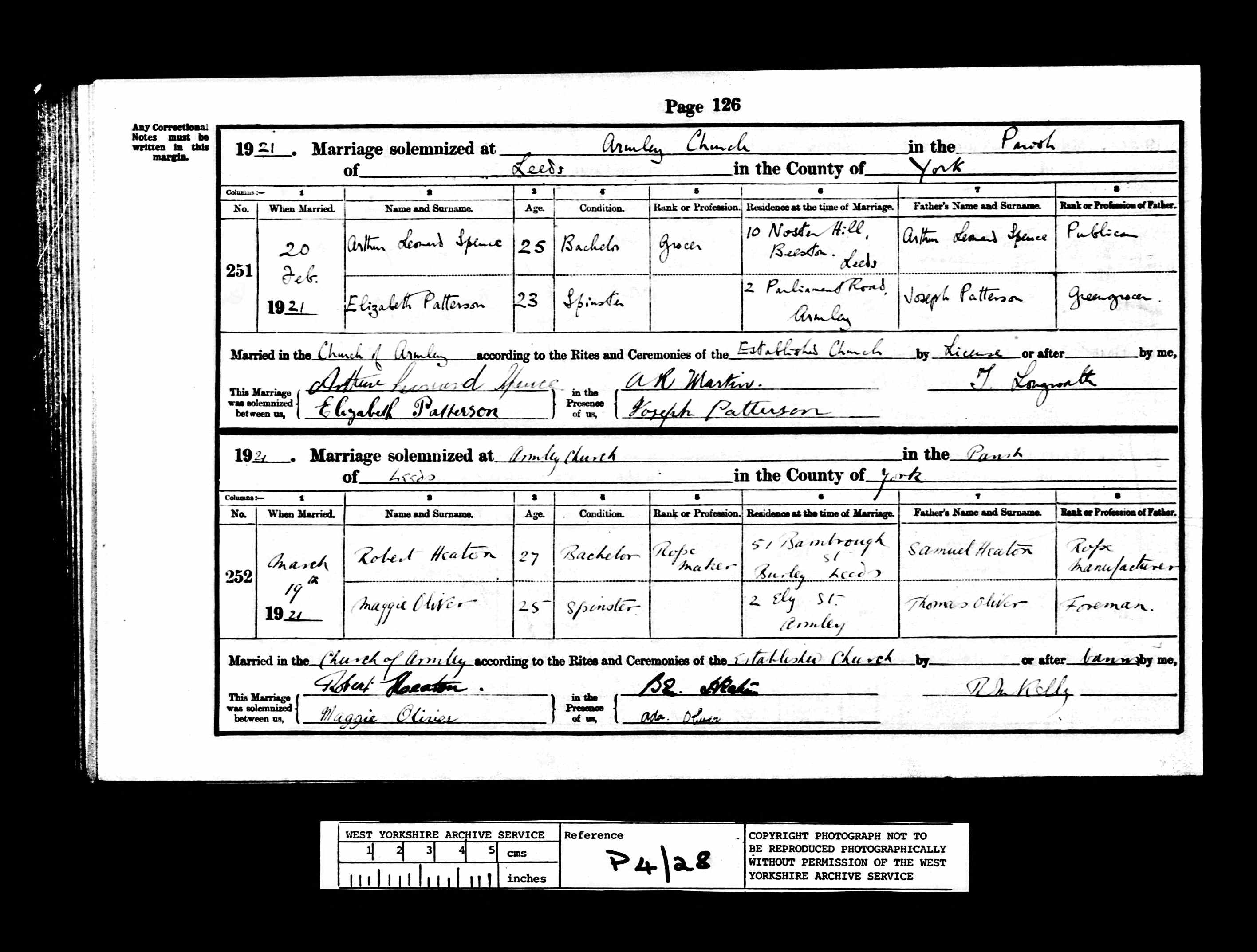 West Yorkshire Archive Service; Wakefield, Yorkshire, England; Yorkshire Parish Records; New Reference Number: RDP4/28