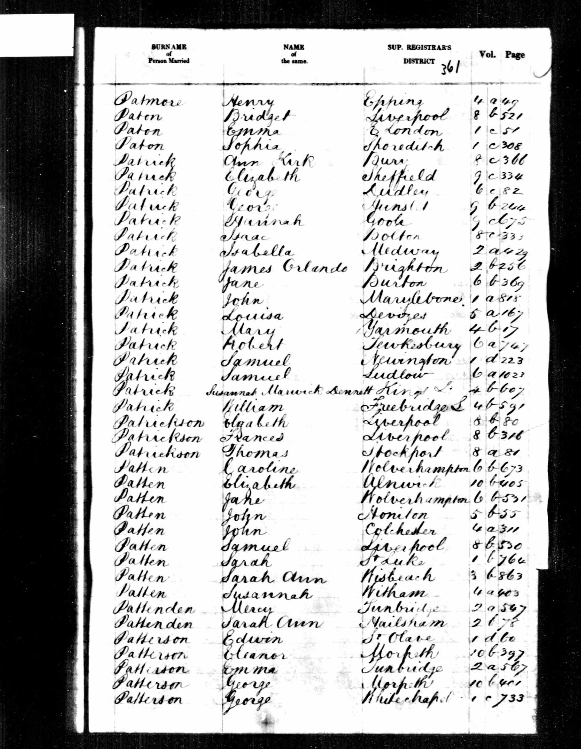 George Patterson - England & Wales, FreeBMD Marriage Index, 1837-1915