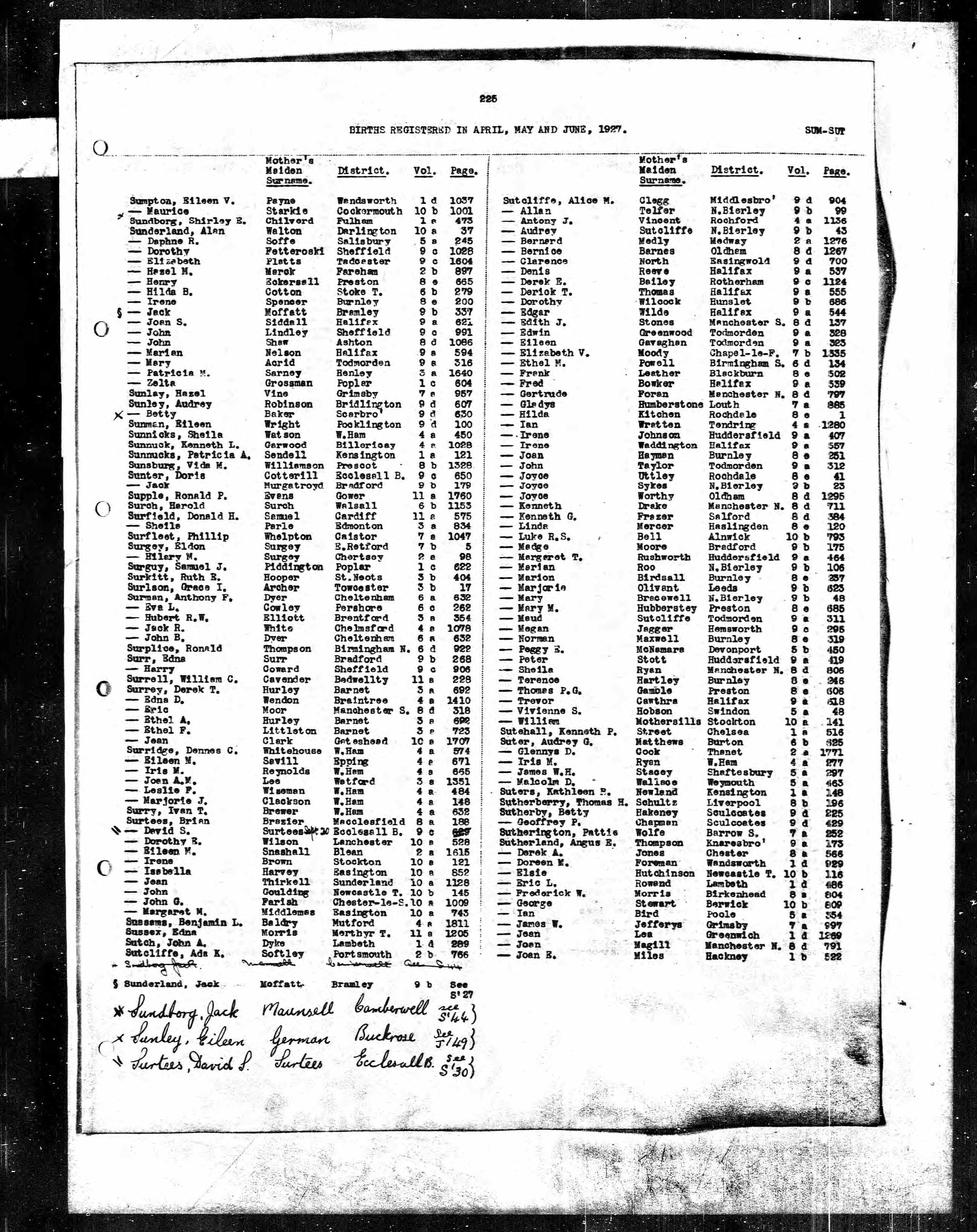 Edwin Sutcliffe - England & Wales, Birth Index, 1916-2005