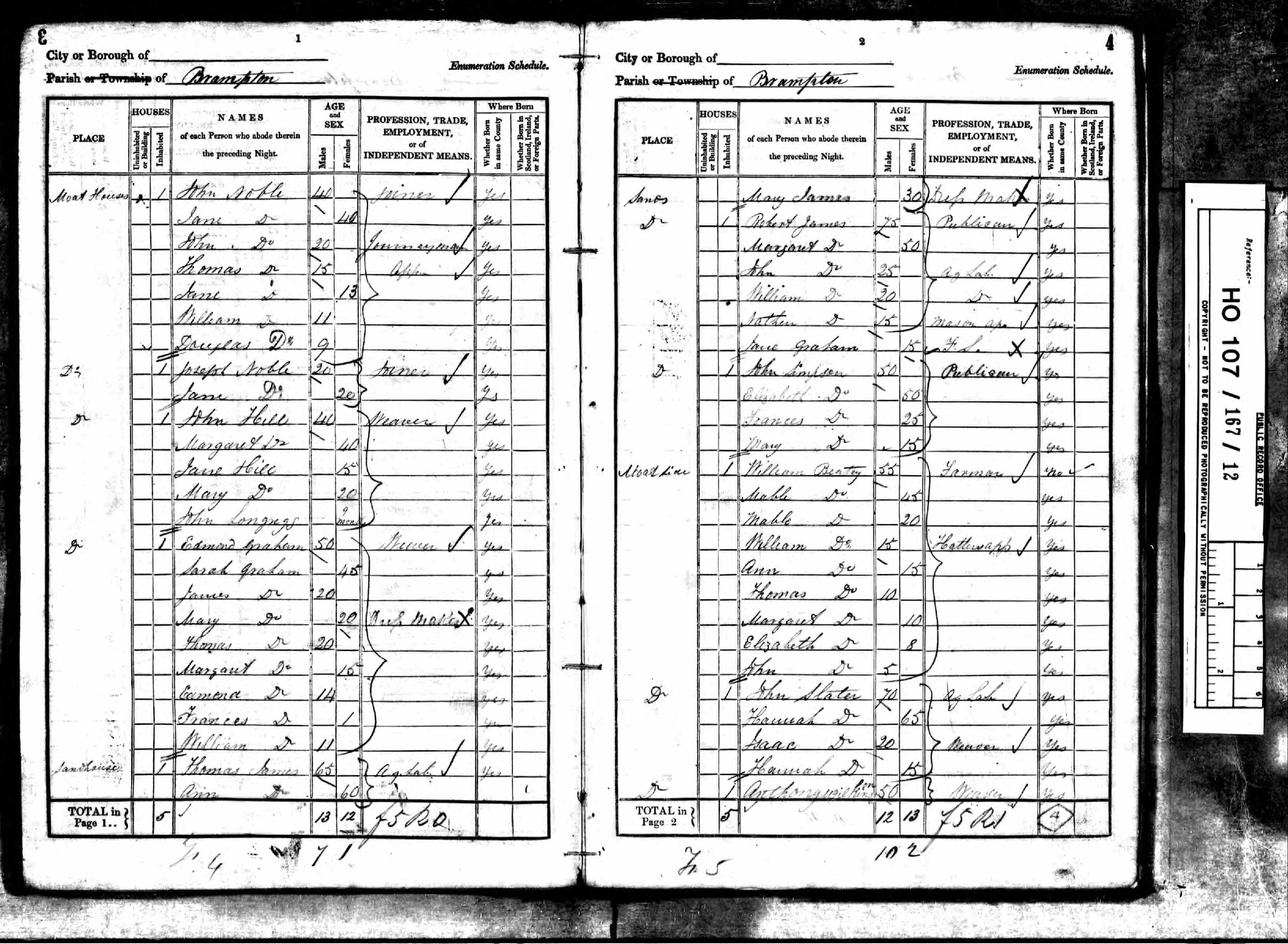 Class: HO107; Piece 167; Book: 12; Civil Parish: Brampton; County: Cumberland; Enumeration District: 9; Folio: 4; Page: 2; Line: 25; GSU roll: 241281.