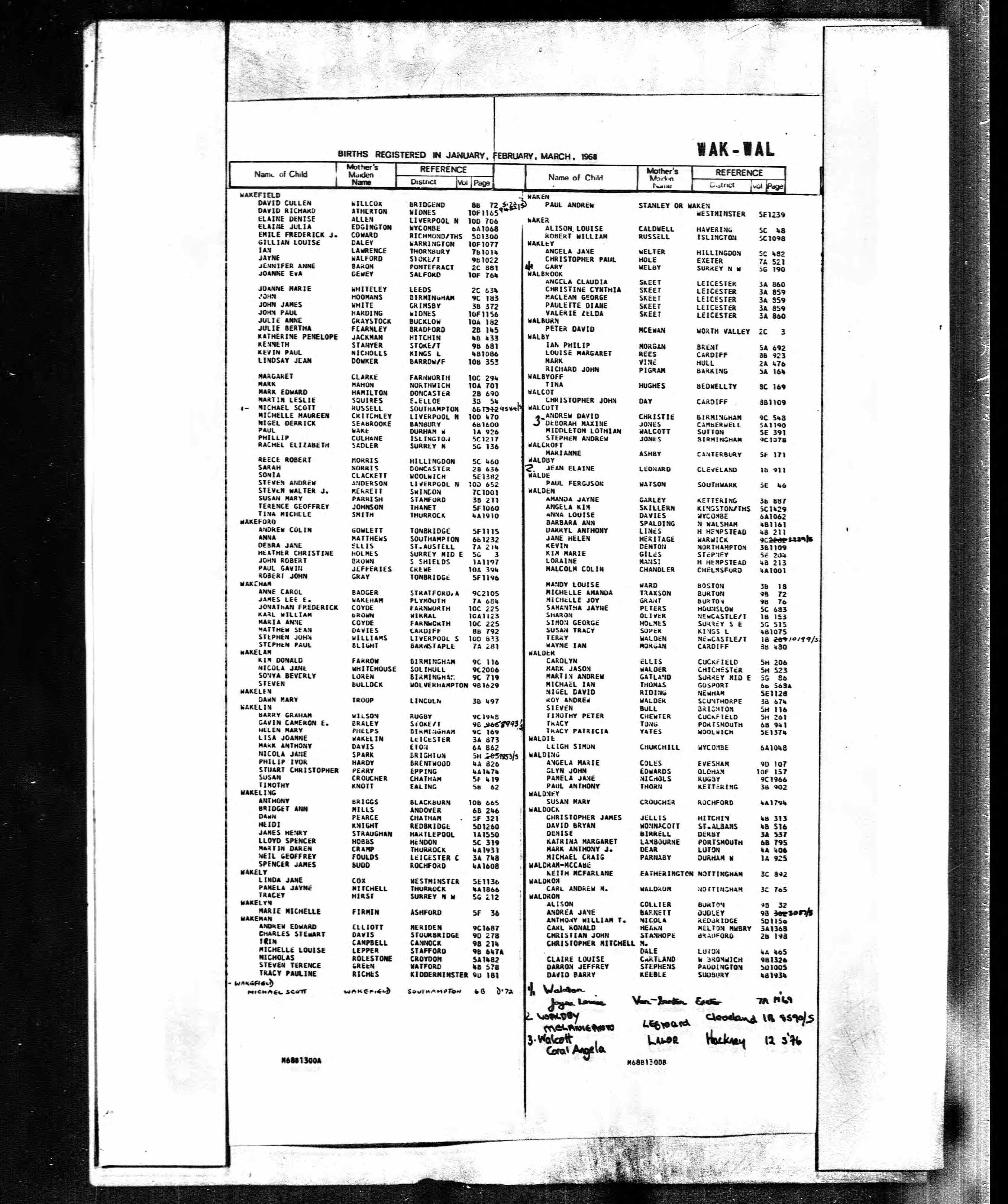 Jennifer Anne Wakefield - England & Wales, Birth Index, 1916-2005