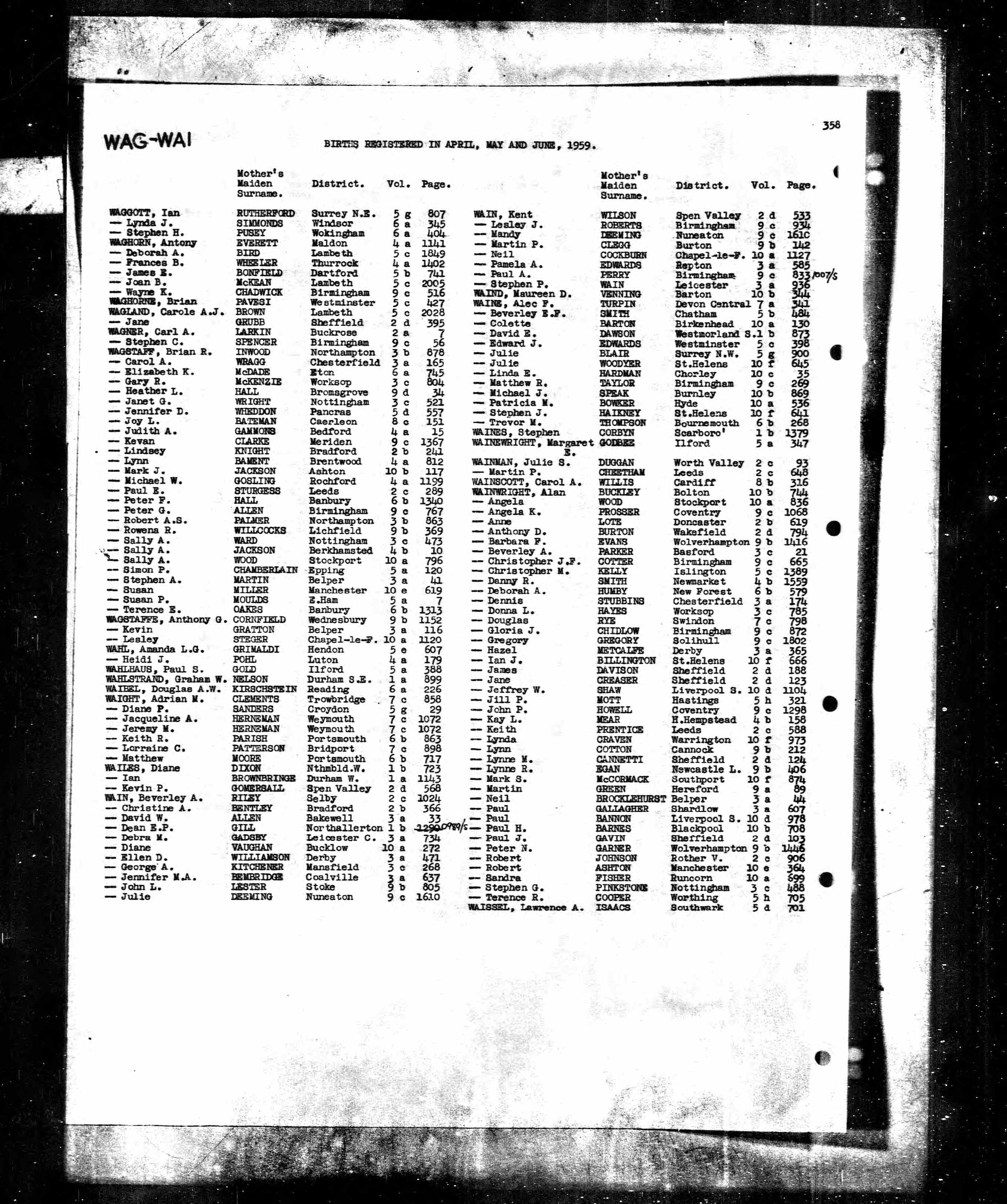 Ian Wailes - England & Wales, Birth Index, 1916-2005