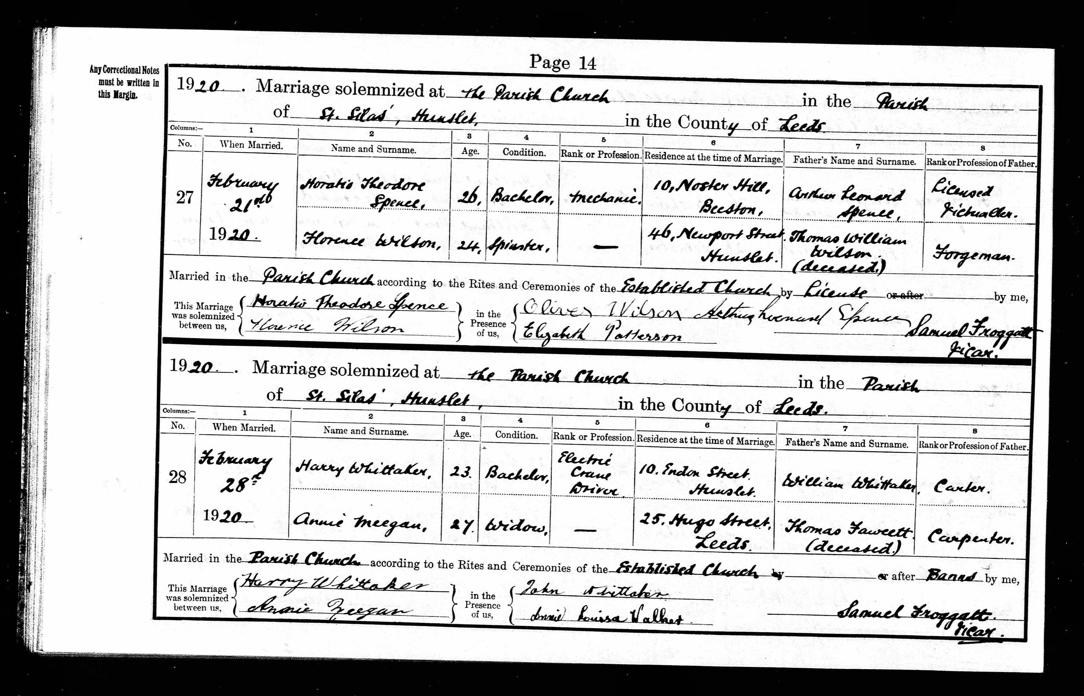 Florence Wilson - West Yorkshire, England, Marriages and Banns, 1813-1935
