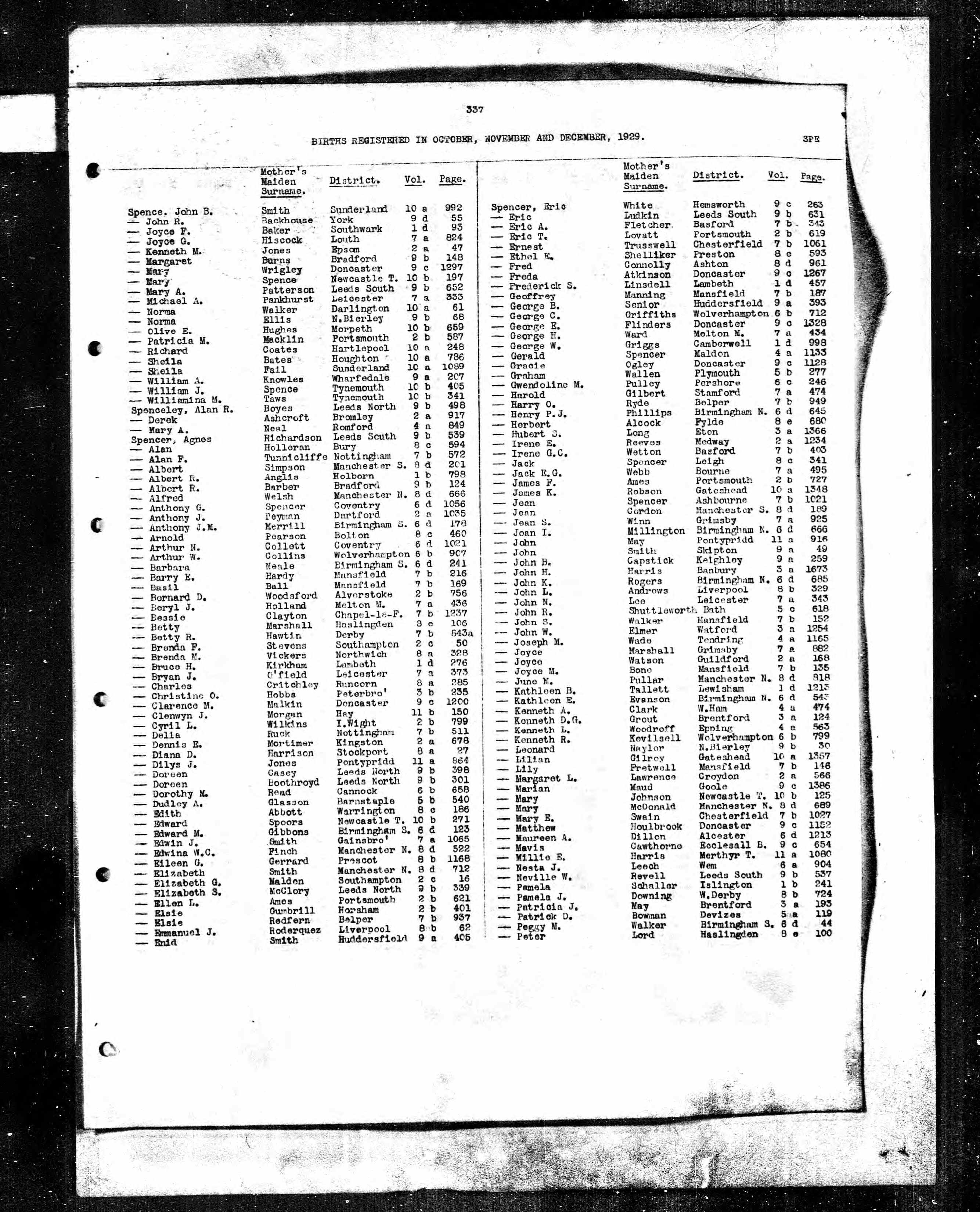 Mary A Spence - England & Wales, Birth Index, 1916-2005