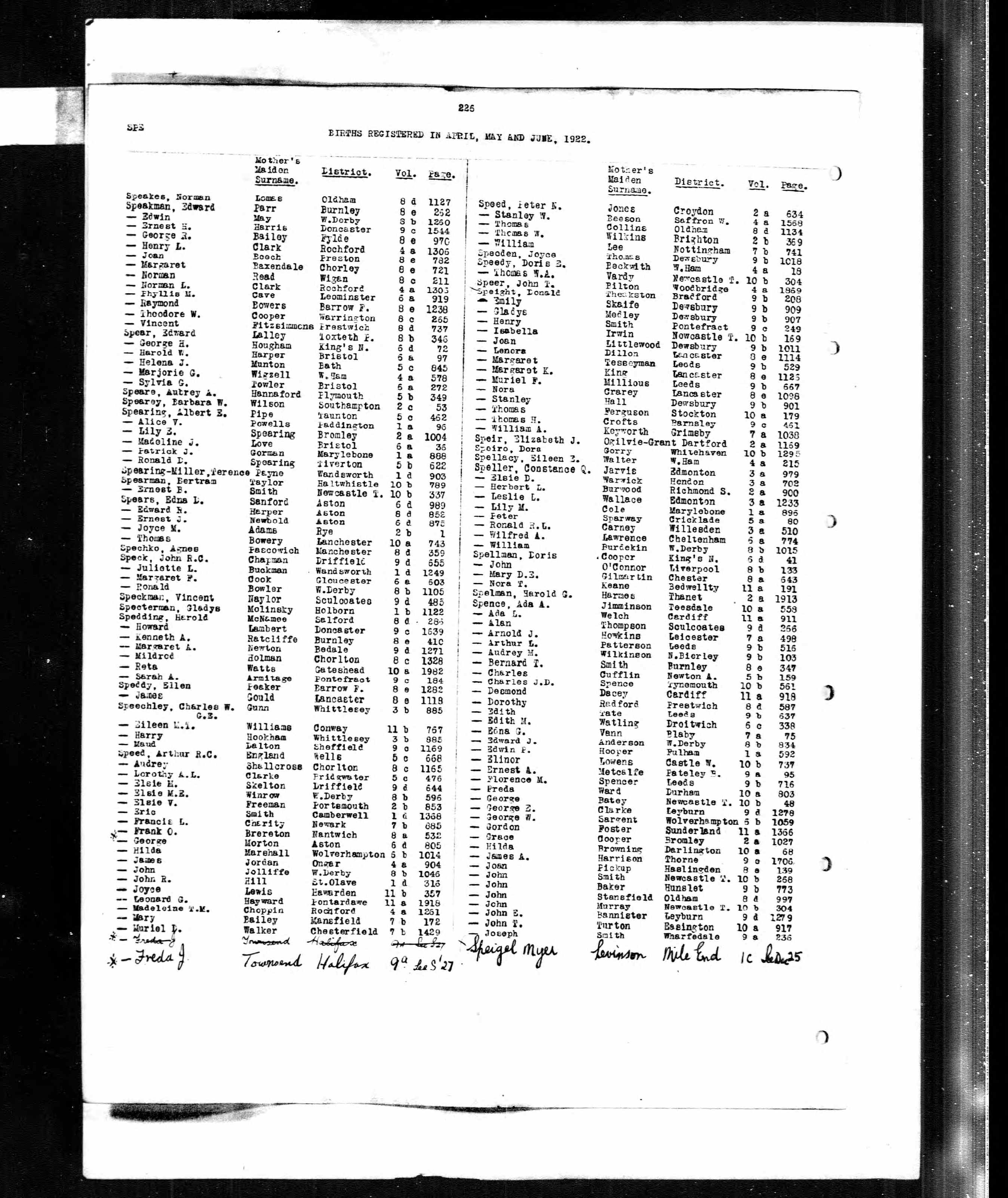 Arthur Leonard Spence - England & Wales, Birth Index, 1916-2005