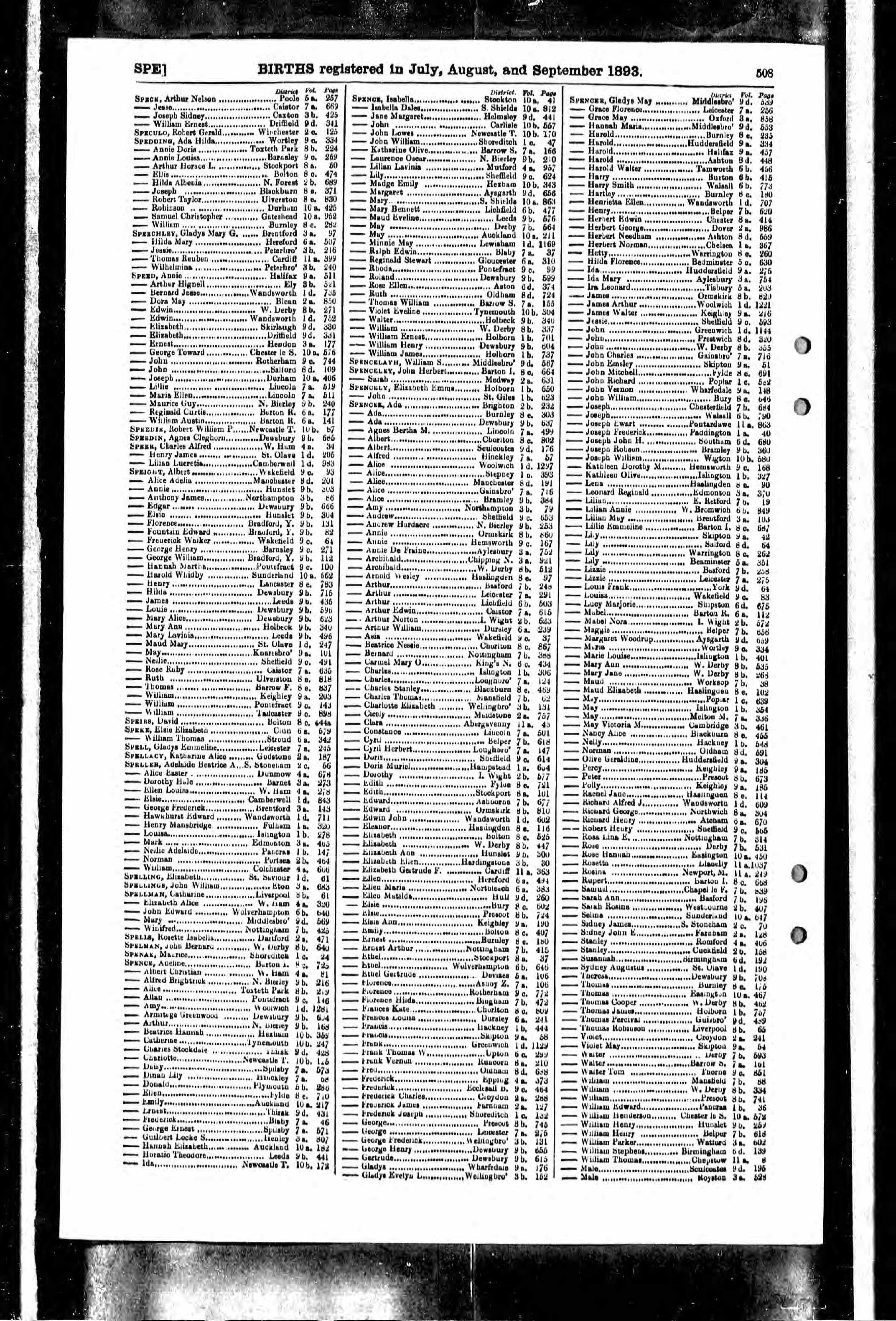 Horatio Theodore Spence - England & Wales, FreeBMD Birth Index, 1837-1915