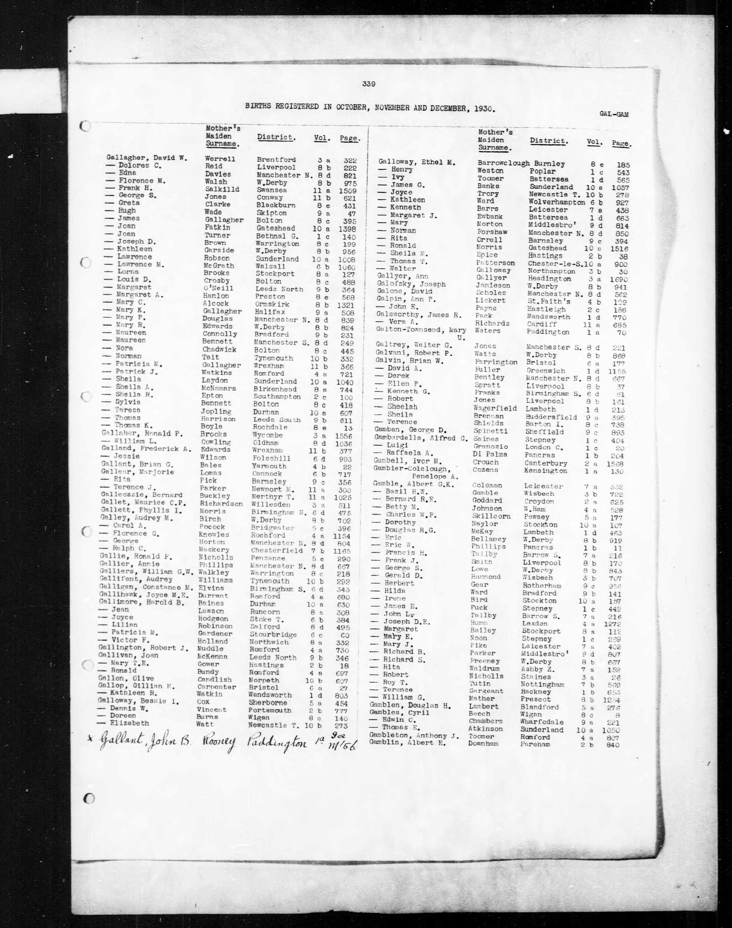 Margaret Gallagher - England & Wales, Civil Registration Birth Index, 1916-2007