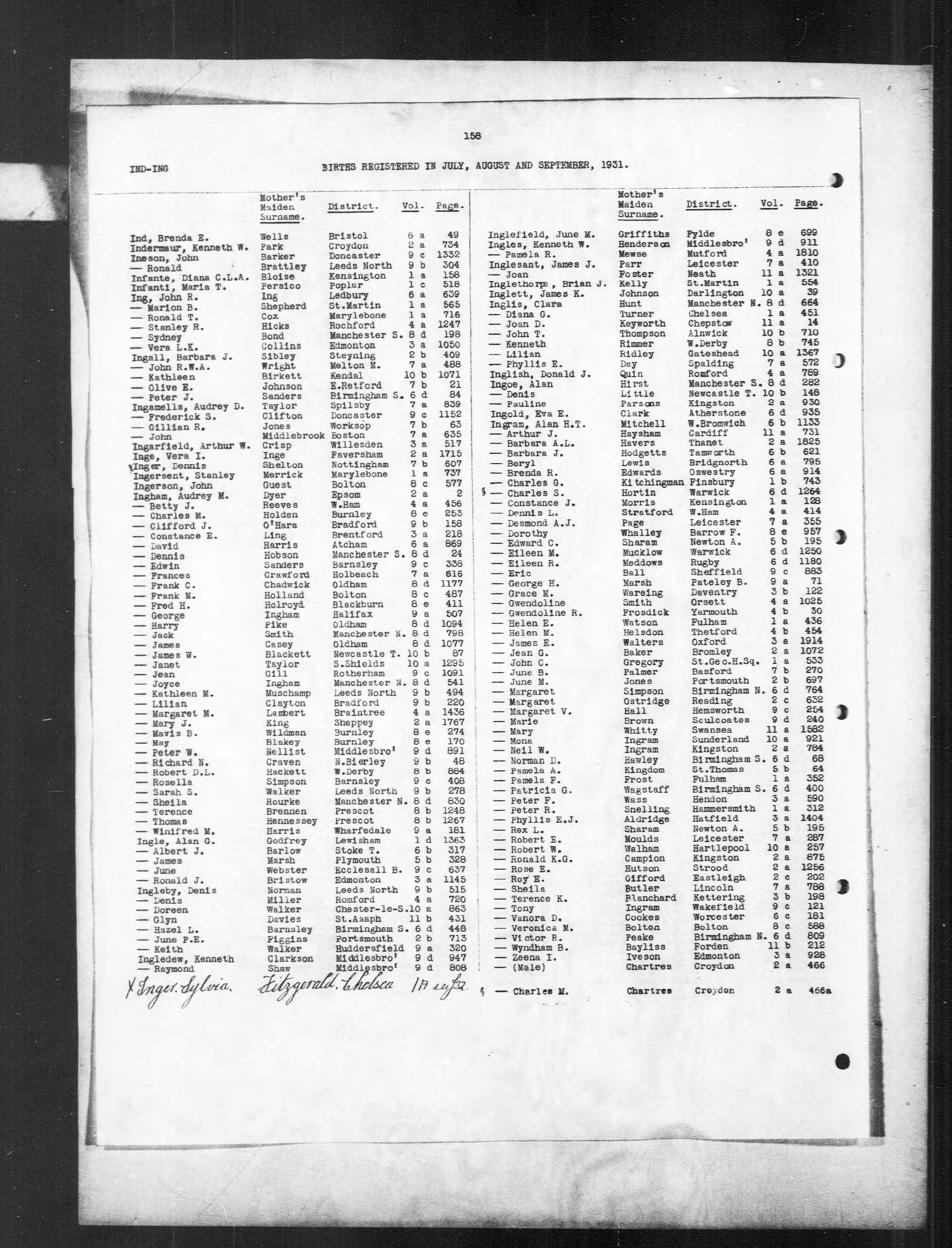 Sarah S Ingham - England & Wales, Civil Registration Birth Index, 1916-2007