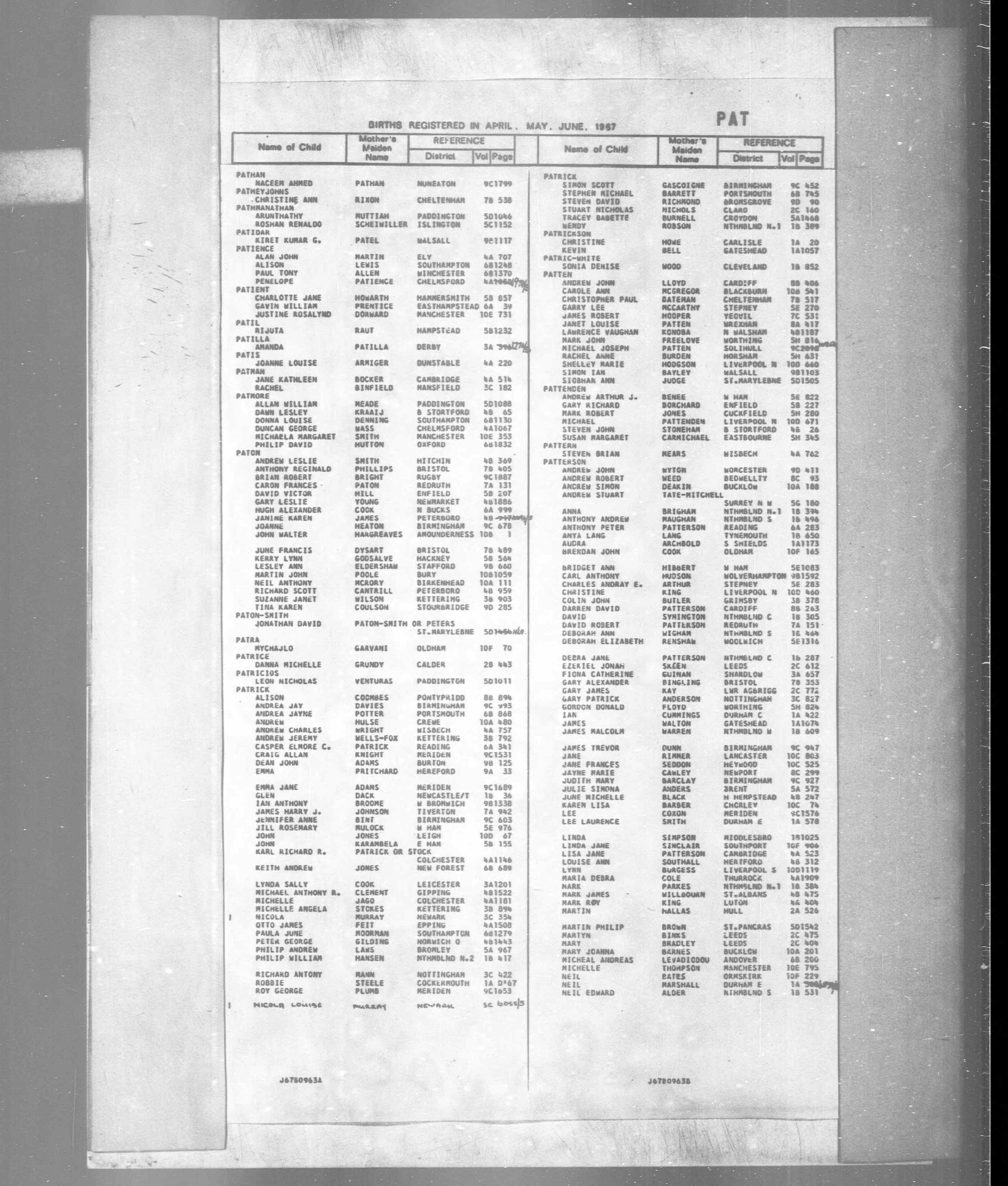 Mary Patterson - England & Wales, Civil Registration Birth Index, 1916-2007