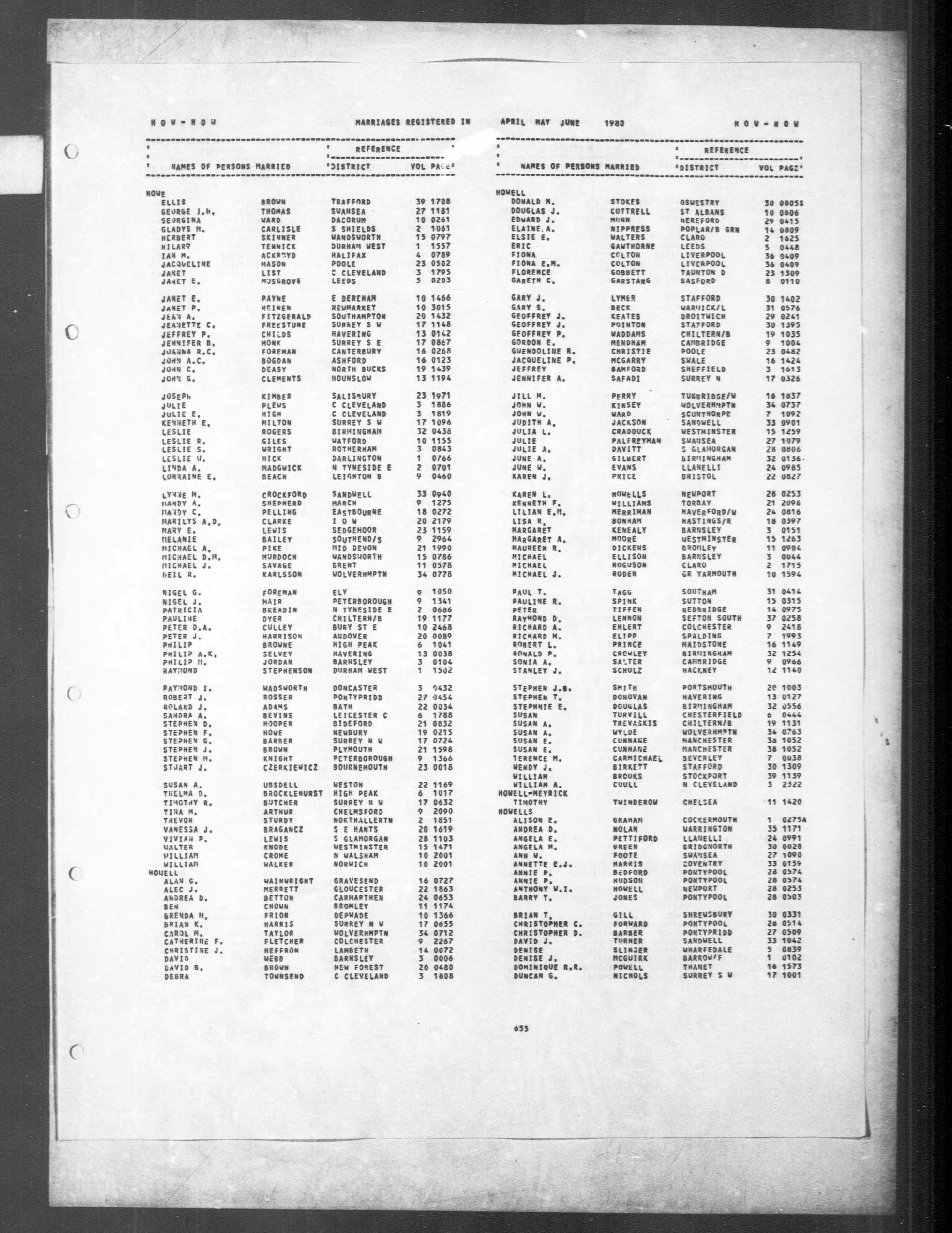 Eric Howell - England & Wales, Civil Registration Marriage Index, 1916-2005