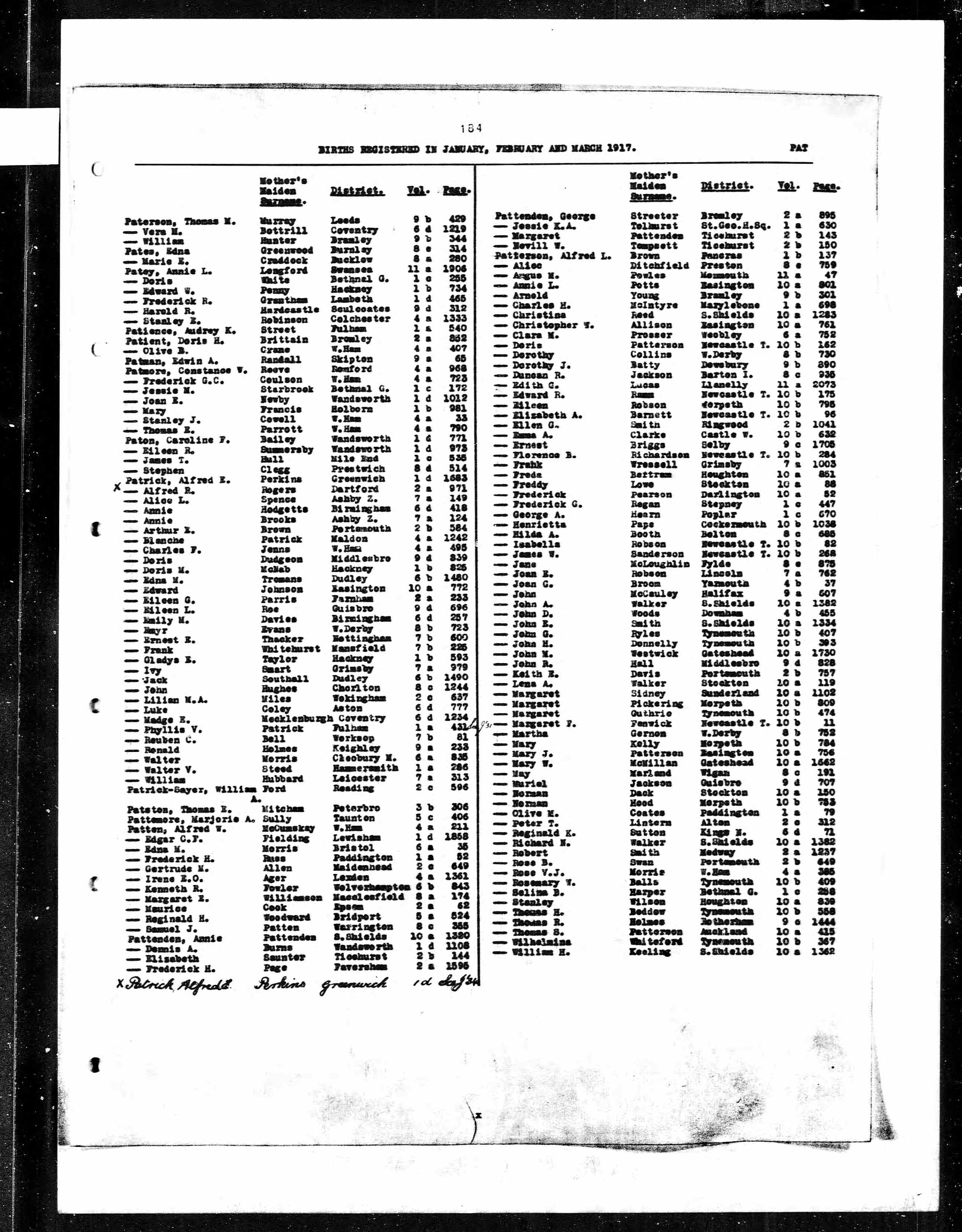 Doris Patterson - England & Wales, Birth Index, 1916-2005